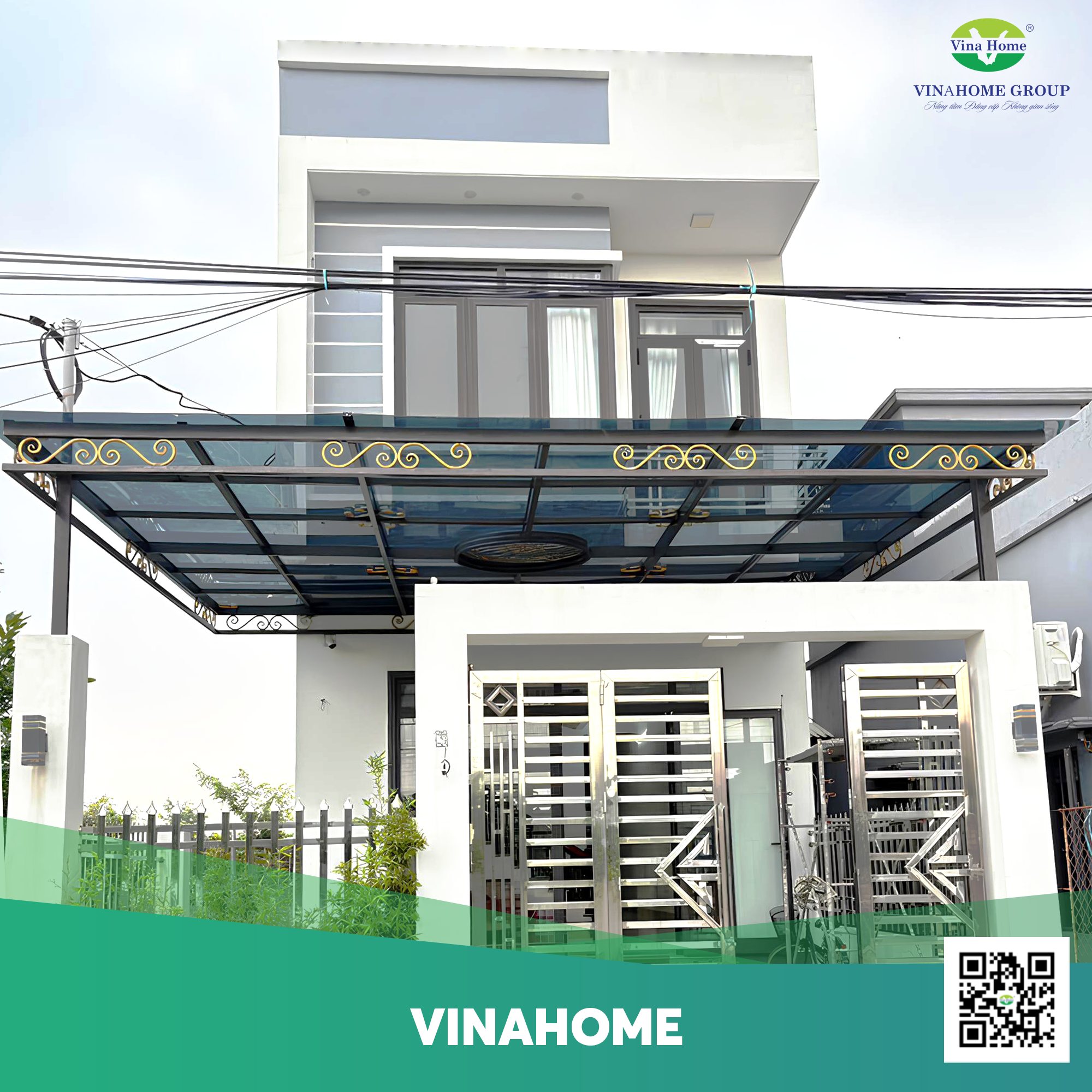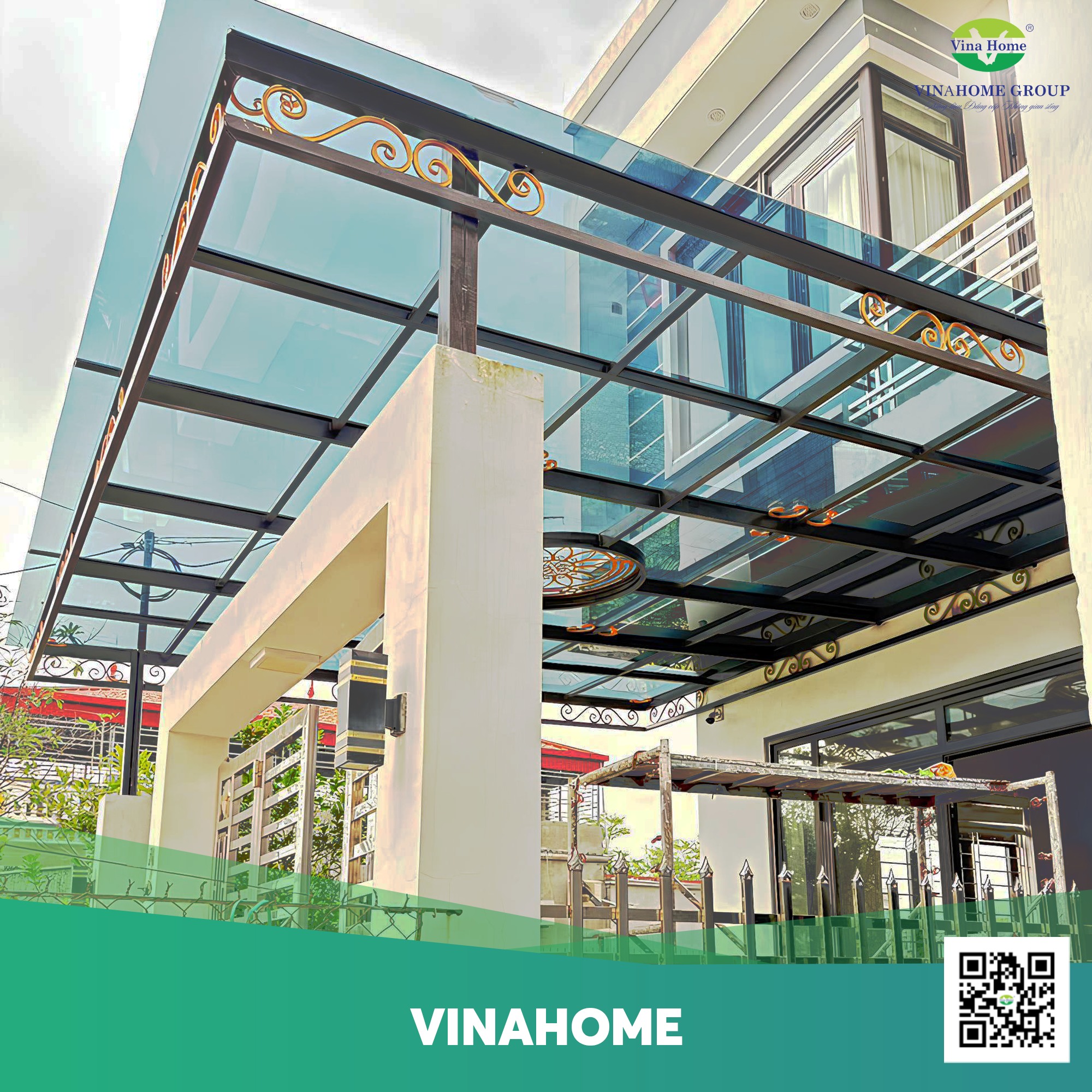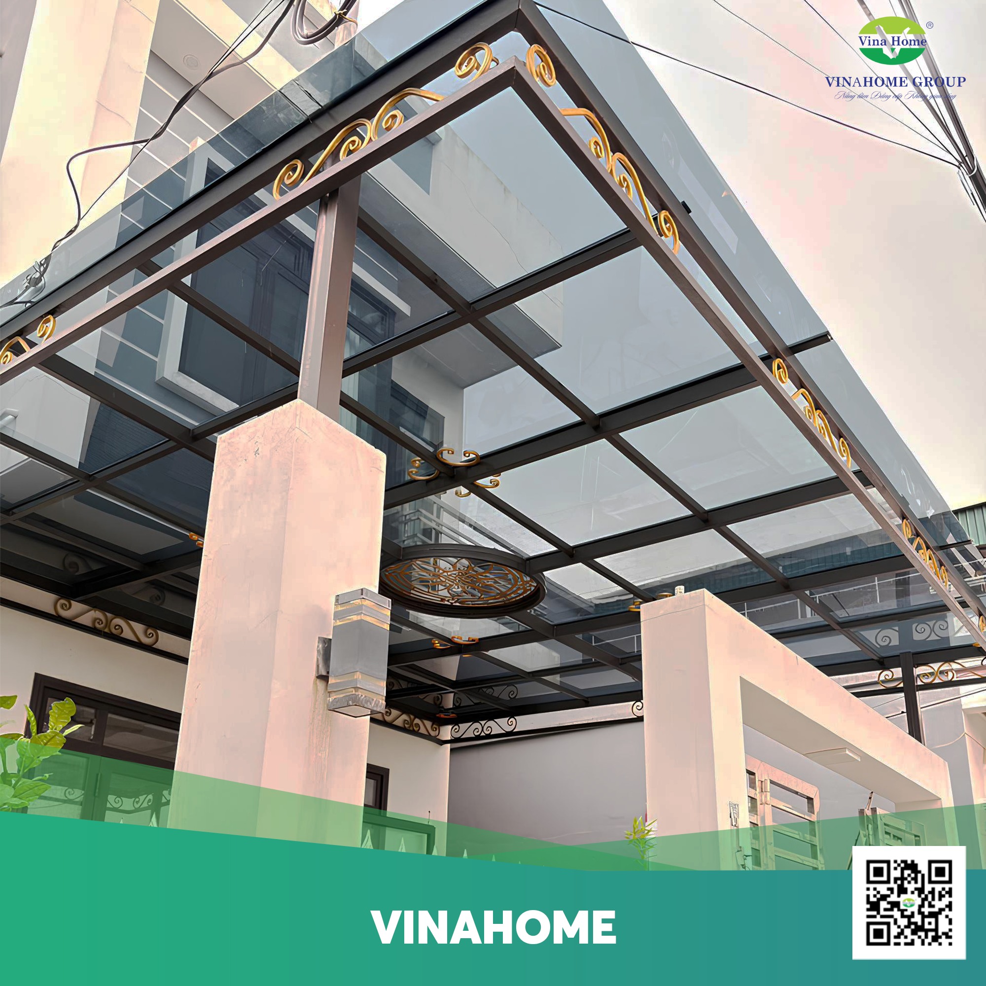 Nội dung thi công: Vinahome phân phối, lắp đặt mái che sân nhà cho công trình nhà dân dụng.