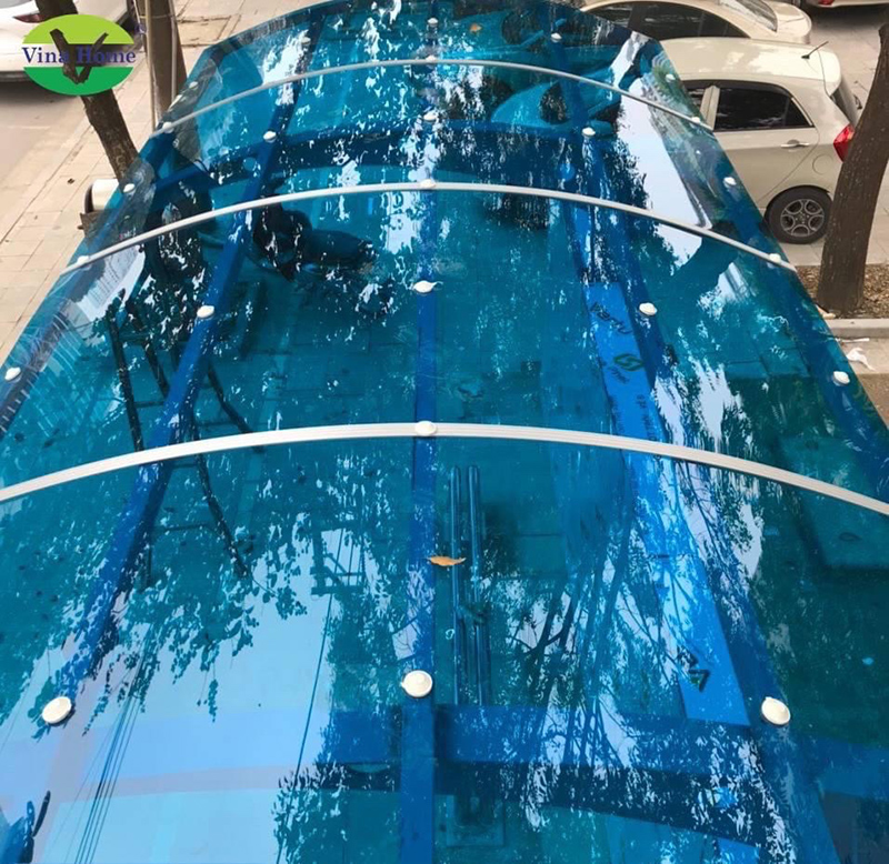 Khi thiết kế và thi công, các kỹ thuật viên sẽ cố định những tấm lấy sáng đặc 6mm vào trụ và khung bằng các ốc vít chuyên dụng hoặc các loại keo dính để tạo mái che, bóng mát.